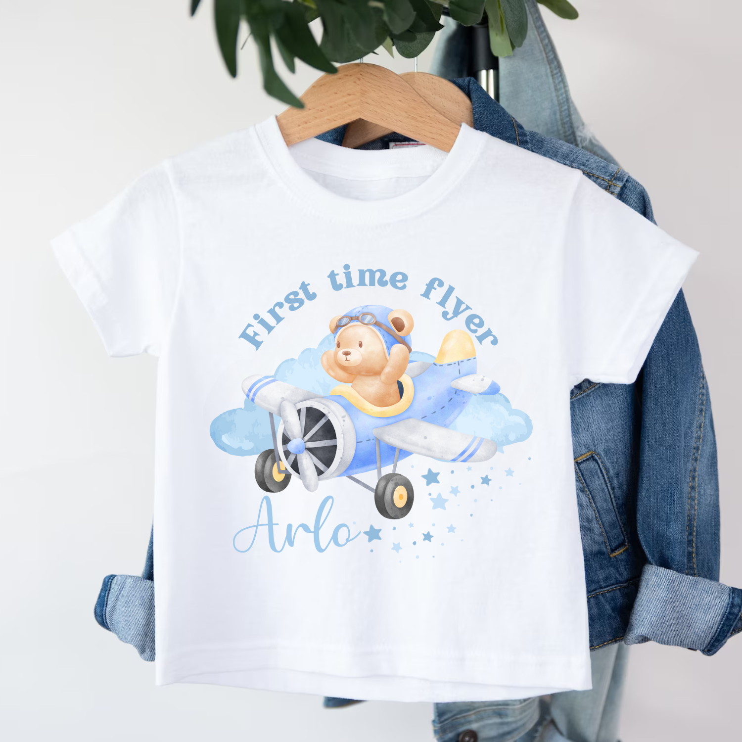 Personalised Holiday T-shirt – First Time Flyer Blue Tee