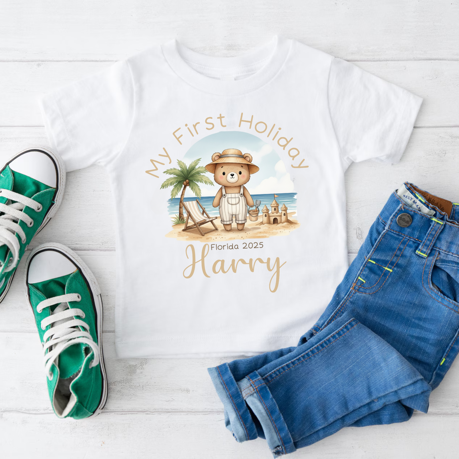 Personalised Holiday T-shirt – First Holiday Bear Tee
