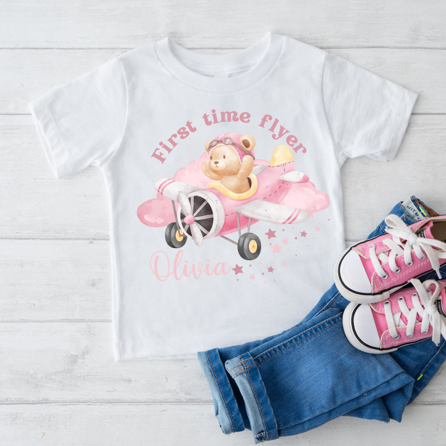 Personalised Holiday T-shirt – First Time Flyer Pink Tee