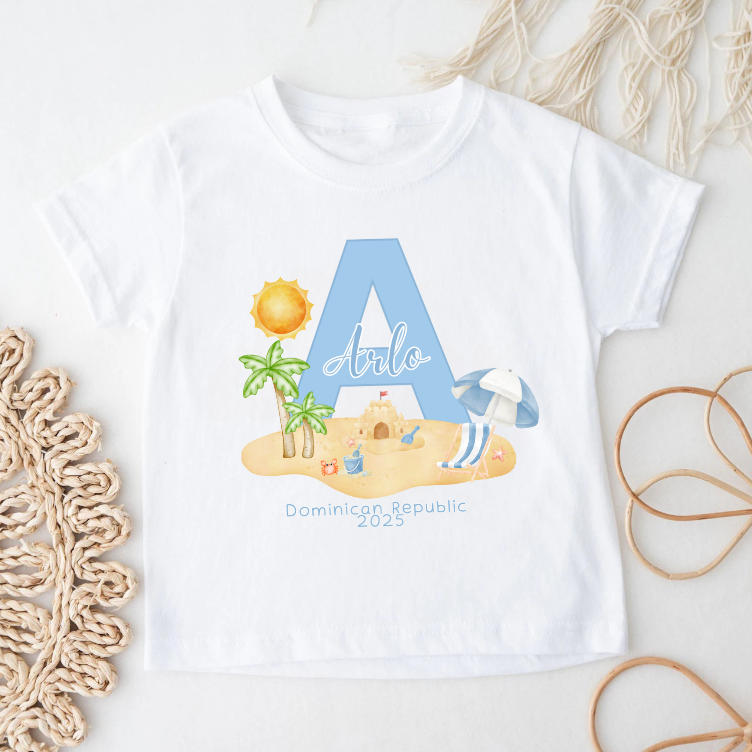 Personalised Initial Holiday T-Shirt – Tropical Beach Design