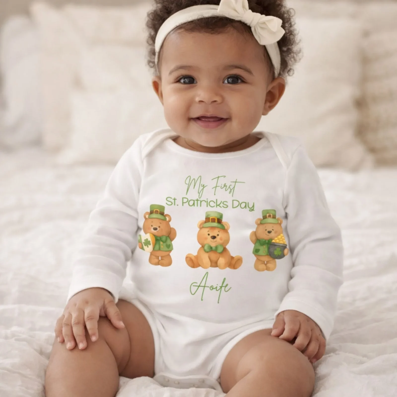 My First St Patrick’s Day Baby Outfit | Personalised Teddy Bear Design