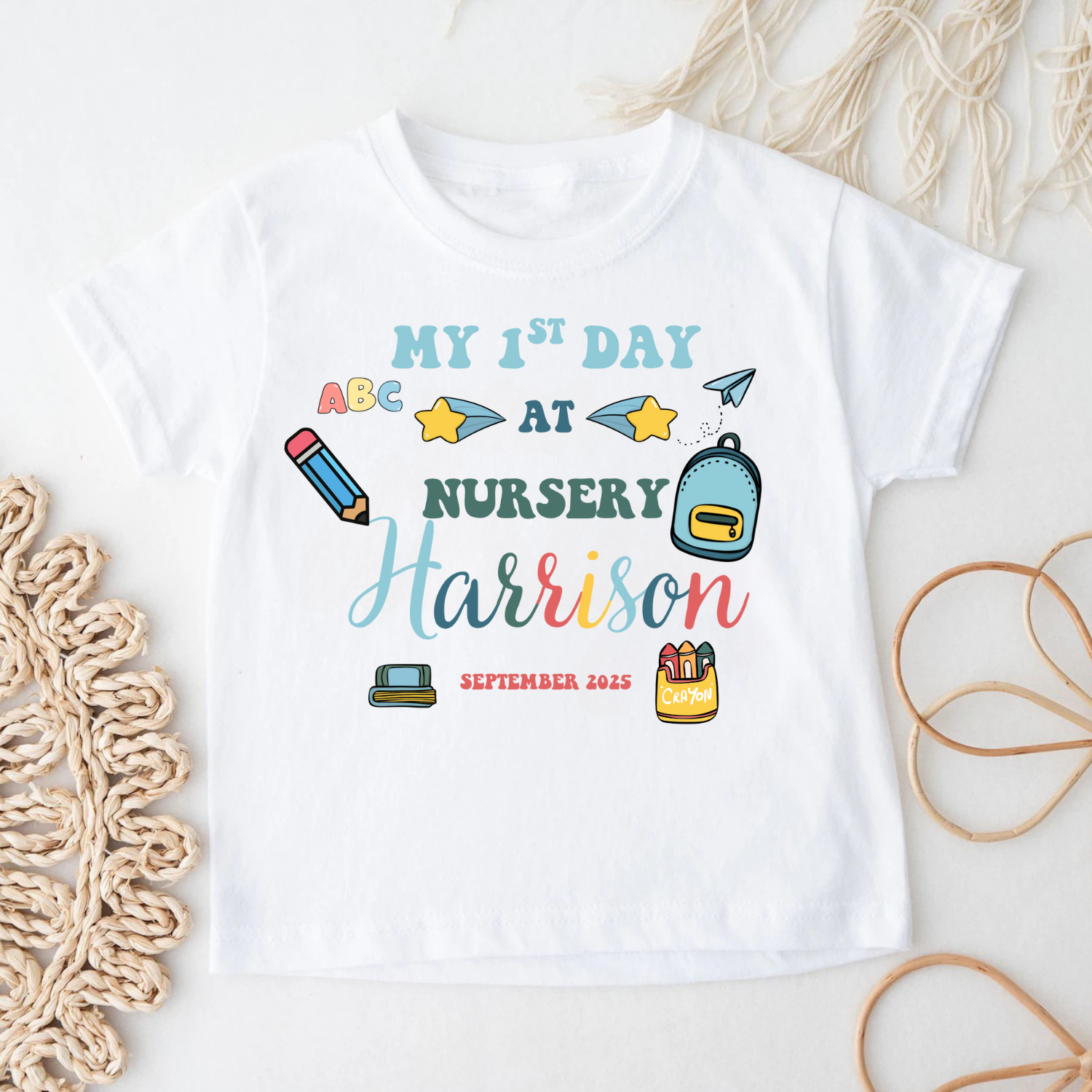 Personalised My 1st Day at Nursery T-Shirt – Custom Name and Date